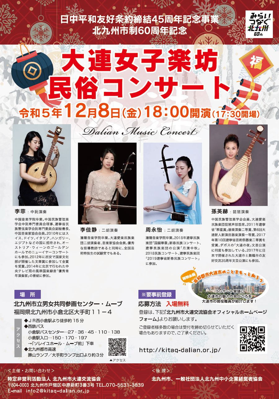 毎年北九州市内で行われる民俗コンサートが新型コロナウイルス感染症の影響で中止となり、オンライン配信という形式になってしまいましたが、中国の民俗楽器を使用した様々なジャンルの曲を楽しむことができます。